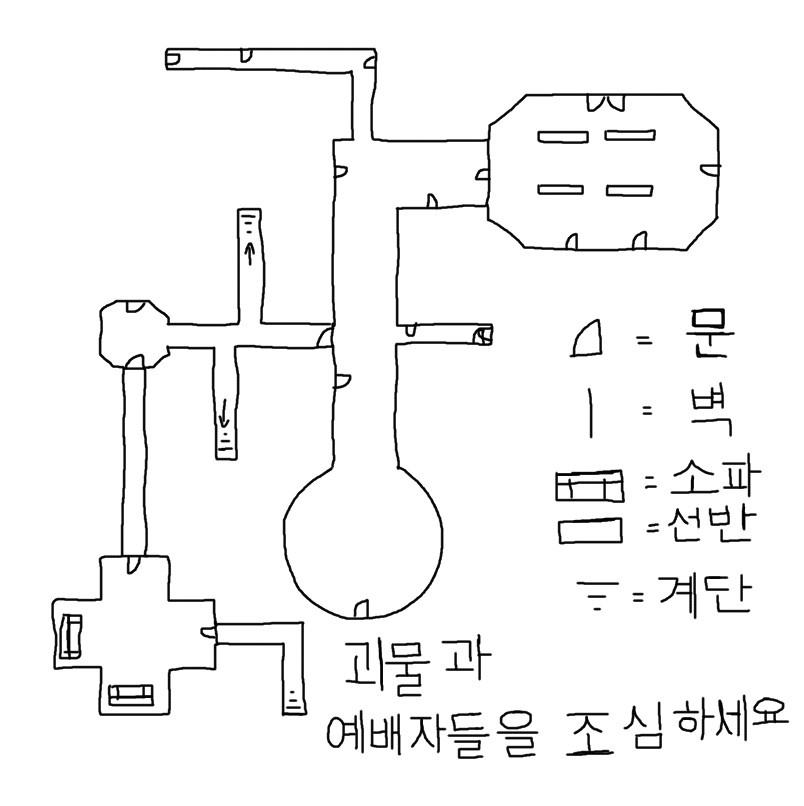 Top symbol: door Line: wall couch-lookin thing: sofa/couch rectangle: shelf three lines: stairs
